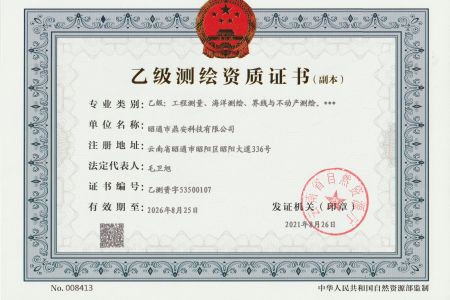 工程測(cè)繪 人員 資質(zhì) 法律法規(guī)、規(guī)章、制度 作業(yè)指導(dǎo)書(shū) 鼎安測(cè)繪技術(shù)設(shè)備 鼎安測(cè)繪技術(shù)及經(jīng)驗(yàn) 昭通市鼎安科技有限公司測(cè)繪風(fēng)采
